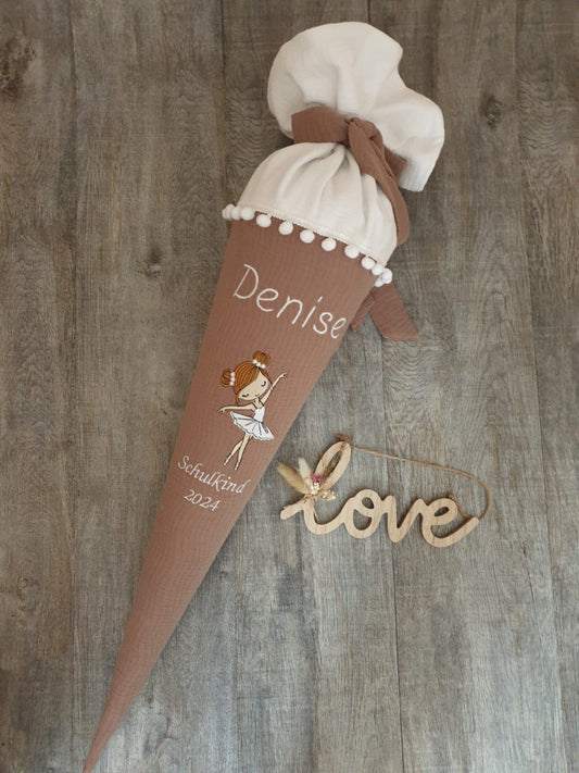 Schultüte, Schule, Geschwistertüte, Einschulung, Ballerina, Balletttänzerin, Taupe Musselin. (ohne Rohling).