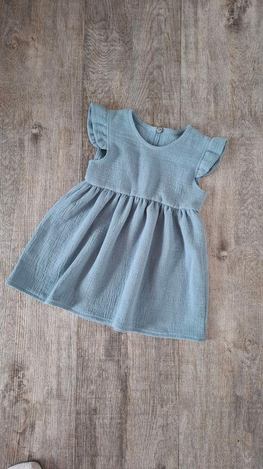 Musselin Kleid Mädchen – Baby Kleid mit Flügelärmeln – Sommerkleid aus Baumwolle – Handgemachtes Kinderkleid.