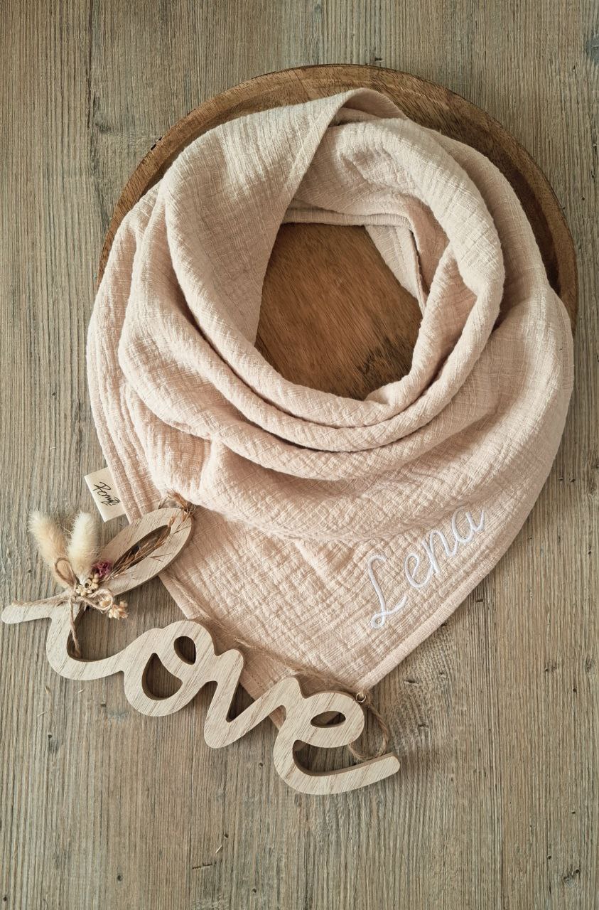 Bio Musselin Kinderhalstuch ,Dreieckstuch, Spucktuch zum knoten aus Musselin mit Namen *personalisierbar*