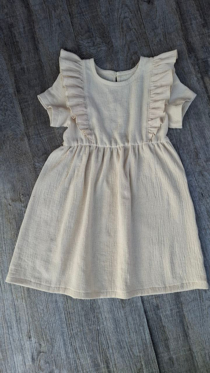 Sommerkleid aus Musselin – Rüschenkleid für Mädchen – Farben: Sand, Blau, Grau – Gr. 86–134