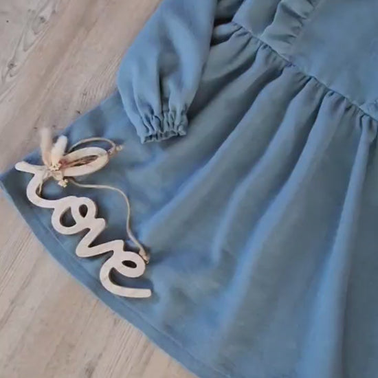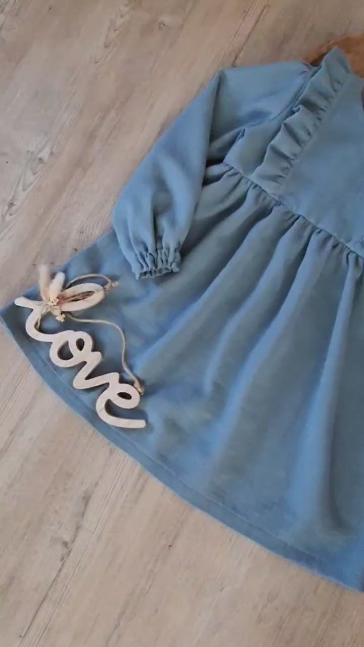 Mädchen Kleid aus Musselin mit Rüschen – Langarm Kleid mit Gummizug – Handgemachtes Kinderkleid in verschiedenen Farben und Größen