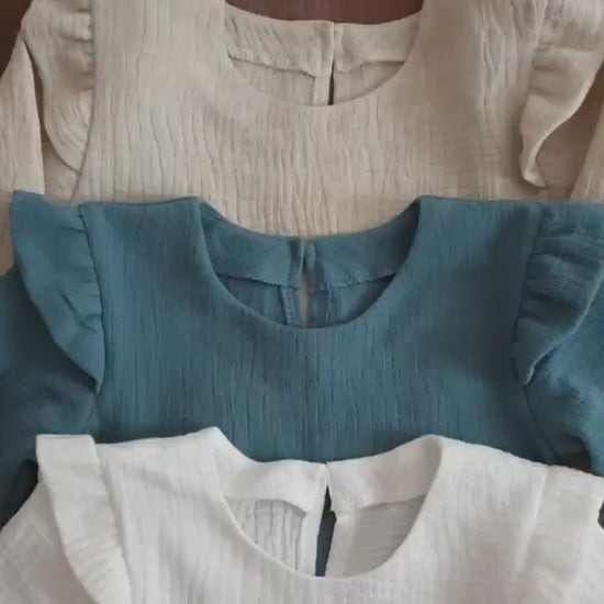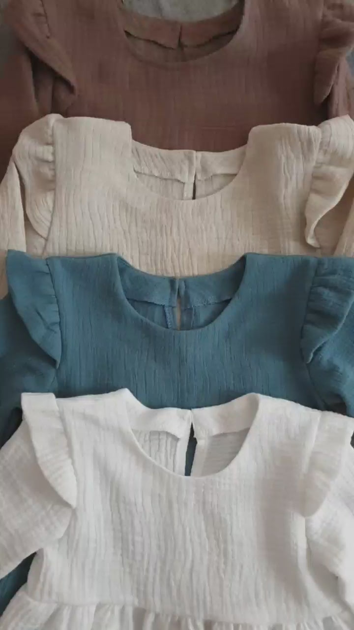 Mädchenkleid aus Bio Musselin (100% Baumwolle), verschiedene Farben und Größen.
