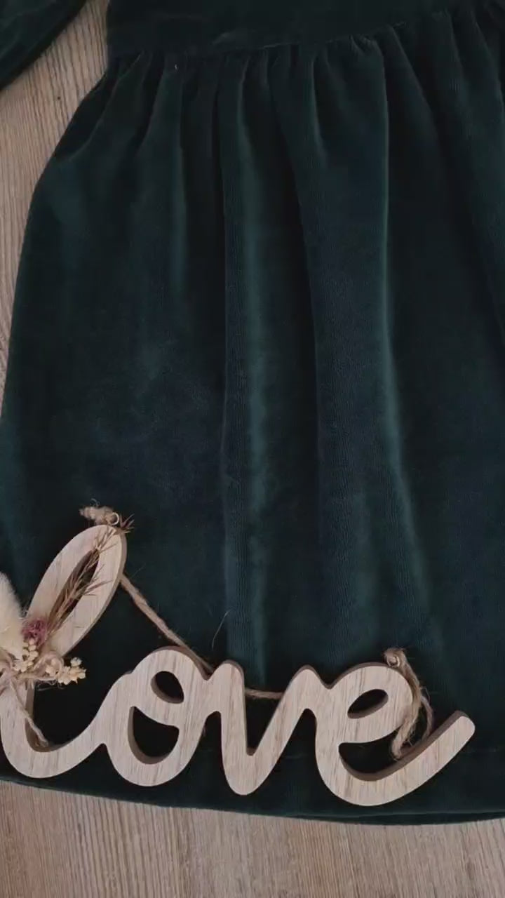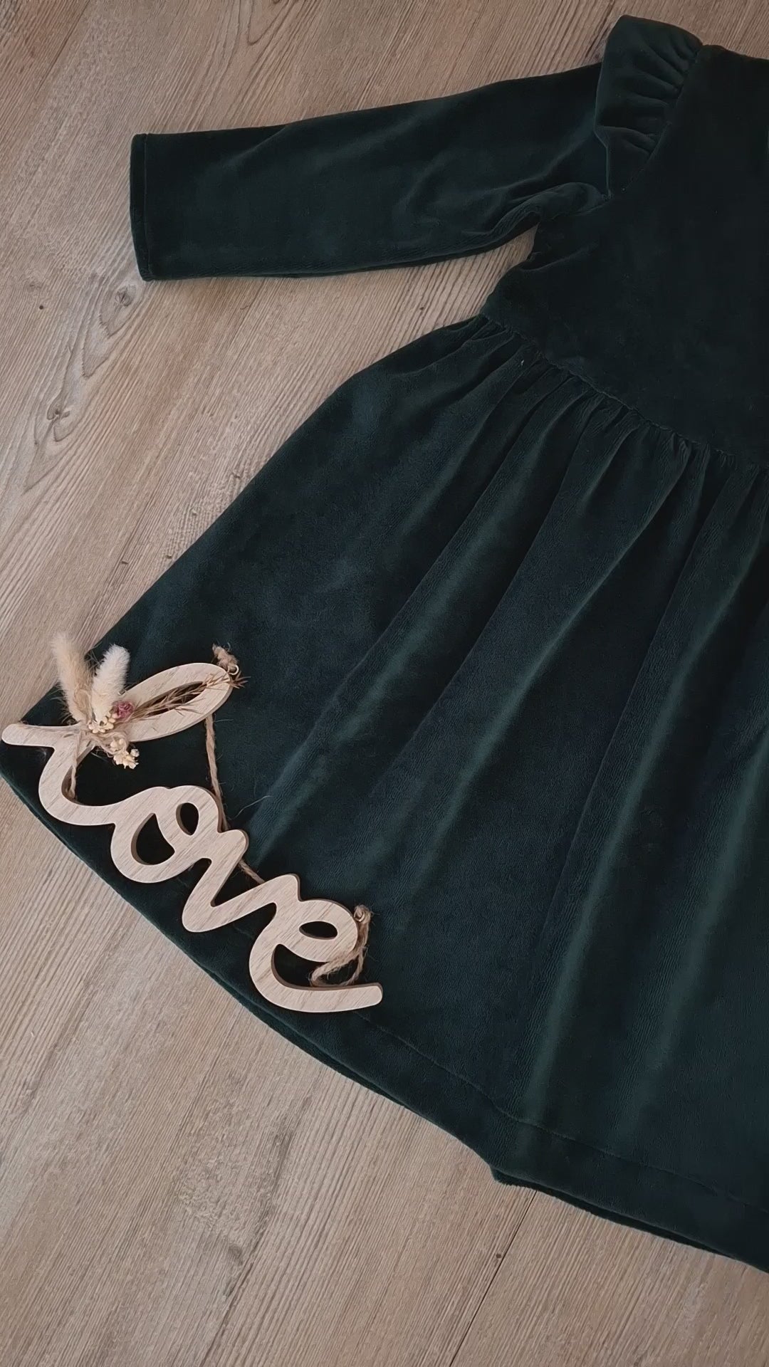 Mädchen Kleid aus Nicki-Stoff in Smaragdgrün – mit langen Ärmeln & Rüschen am Oberarm – Größe 68–122