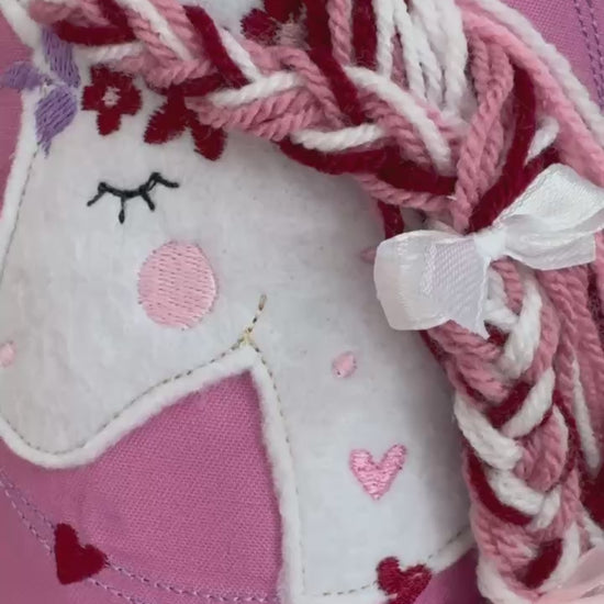 Motiv: Boho-Einhorn mit bunter Mähne aus Garn