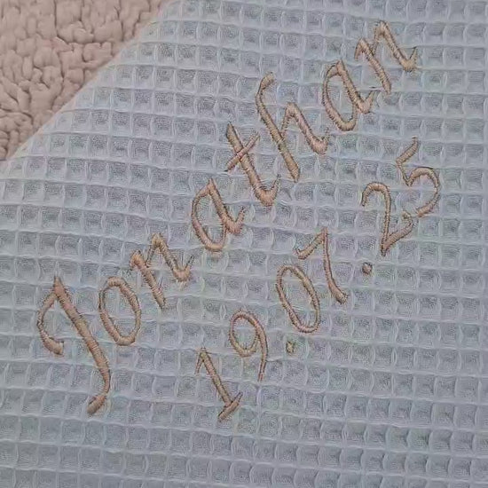 Personalisierte Babydecke mit Namen & Geburtsdatum – Babydecke Jungen – Geschenk zur Geburt / Taufe – Waffelstoff Baumwolle & Teddyfleece