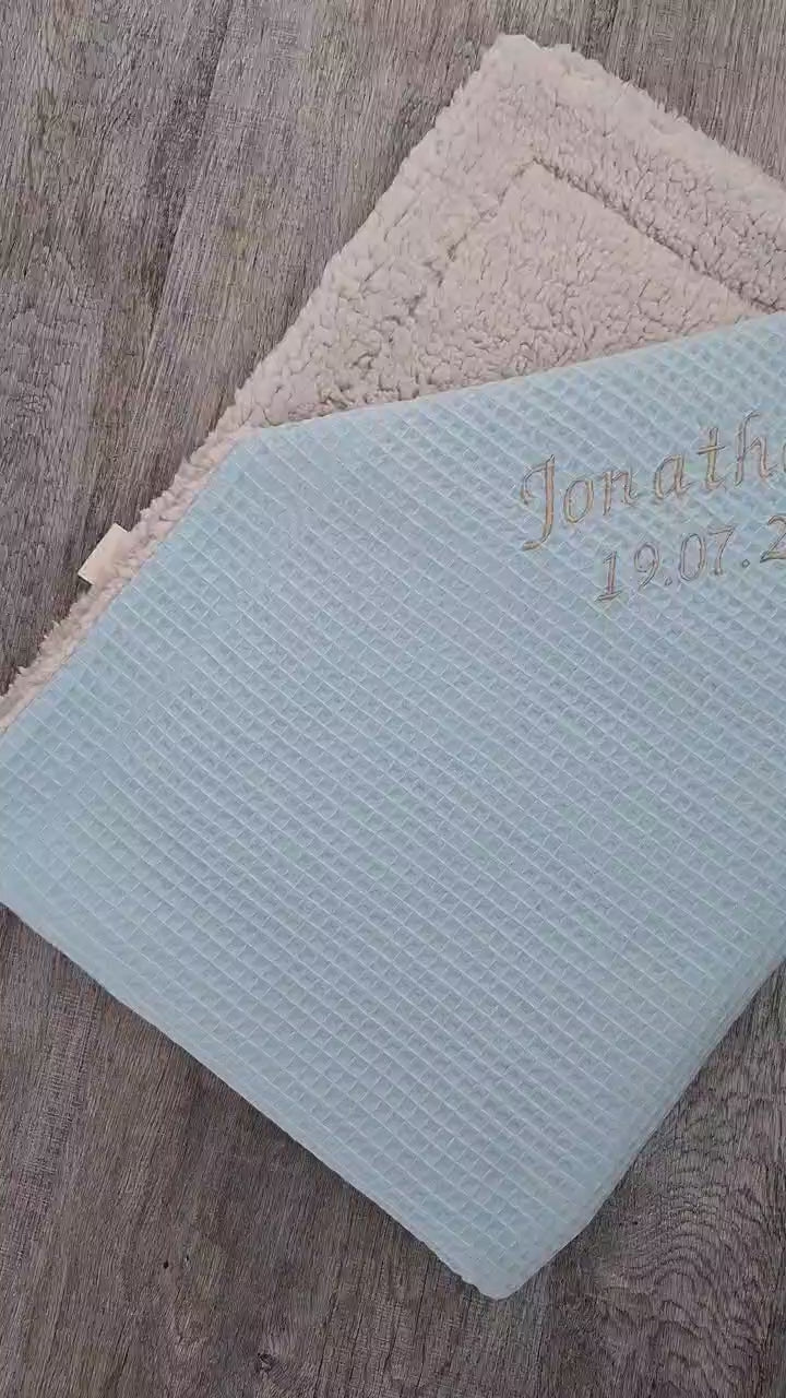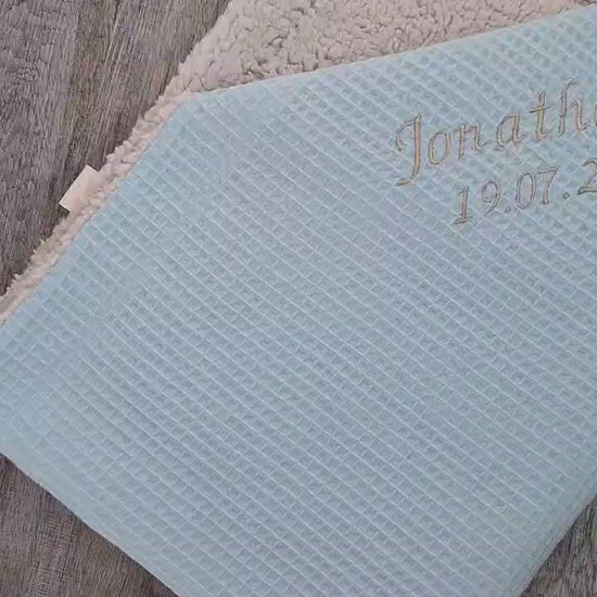 Unsere hochwertige, handgefertigte Babydecke ist nicht nur wunderbar weich, sondern wird durch die individuelle Bestickung mit Namen und Geburtsdatum zu einem ganz besonderen Erinnerungsstück.